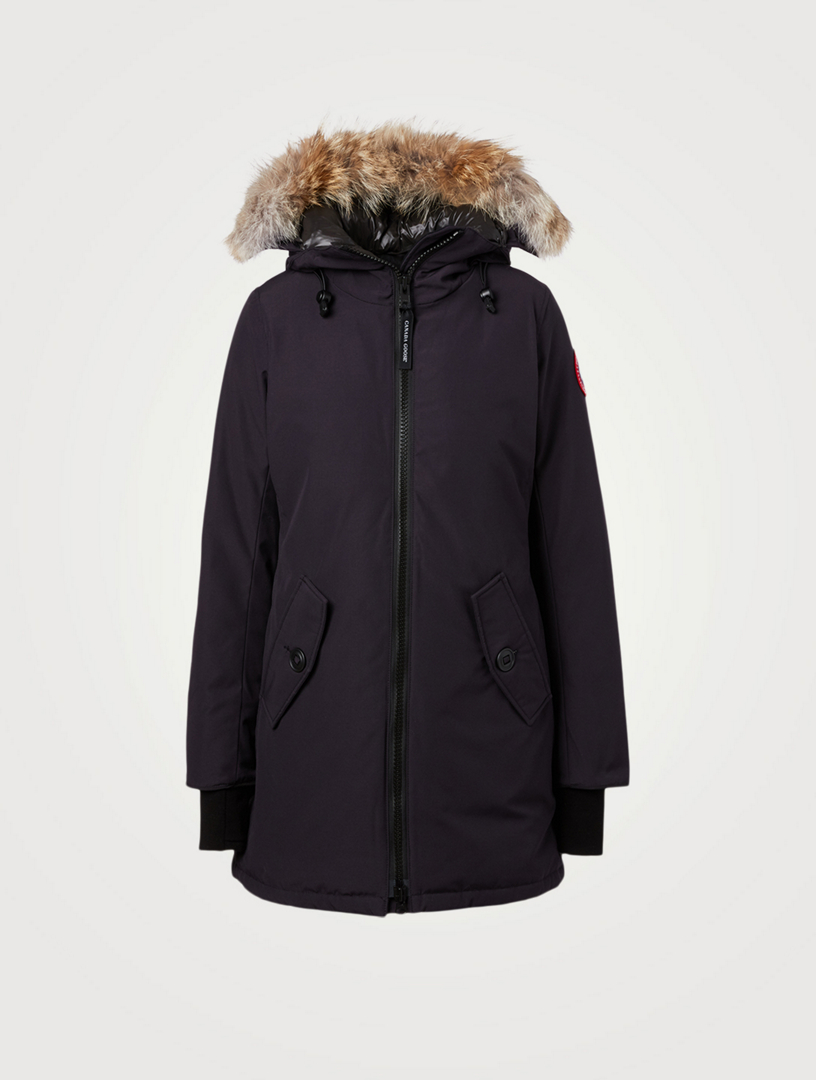Canada Goose Rosemont Parka w/ Coyote Fur Ruff Bergdorf Goodman DESCRIPTION:Stay warm when temps are freezing in the Canada Goose Women's Rosemont Parka with 625 Fill Power White Duck Down insulation. FEATURES:Two-way adjustable down-filled hood Reflective webbing Shaping wire in brim with removable fur Tricot lined chin guard Interior back straps for hand-free carry Rib-knit cuffs