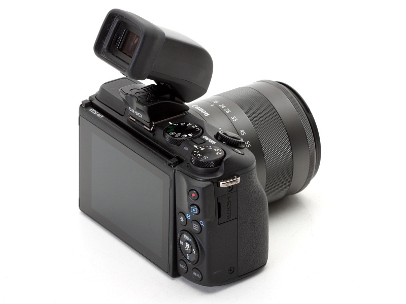 Canon EVFDC1 Review Electronic Viewfinder for the EOS M3, PowerShot G1 X Mark II & PowerShot Canon EVF-DC1 Electronic Viewfinder | Photo courtesy Canon Inc. Using the EVF-DC1. The M3 display default is set to switch between EVF and LCD when you remove your eye from the EVF. I found constant auto switching between EVF and LCD distracting but this behavior can be disabled in the Display Control menu. Now I simply press the monitor button.