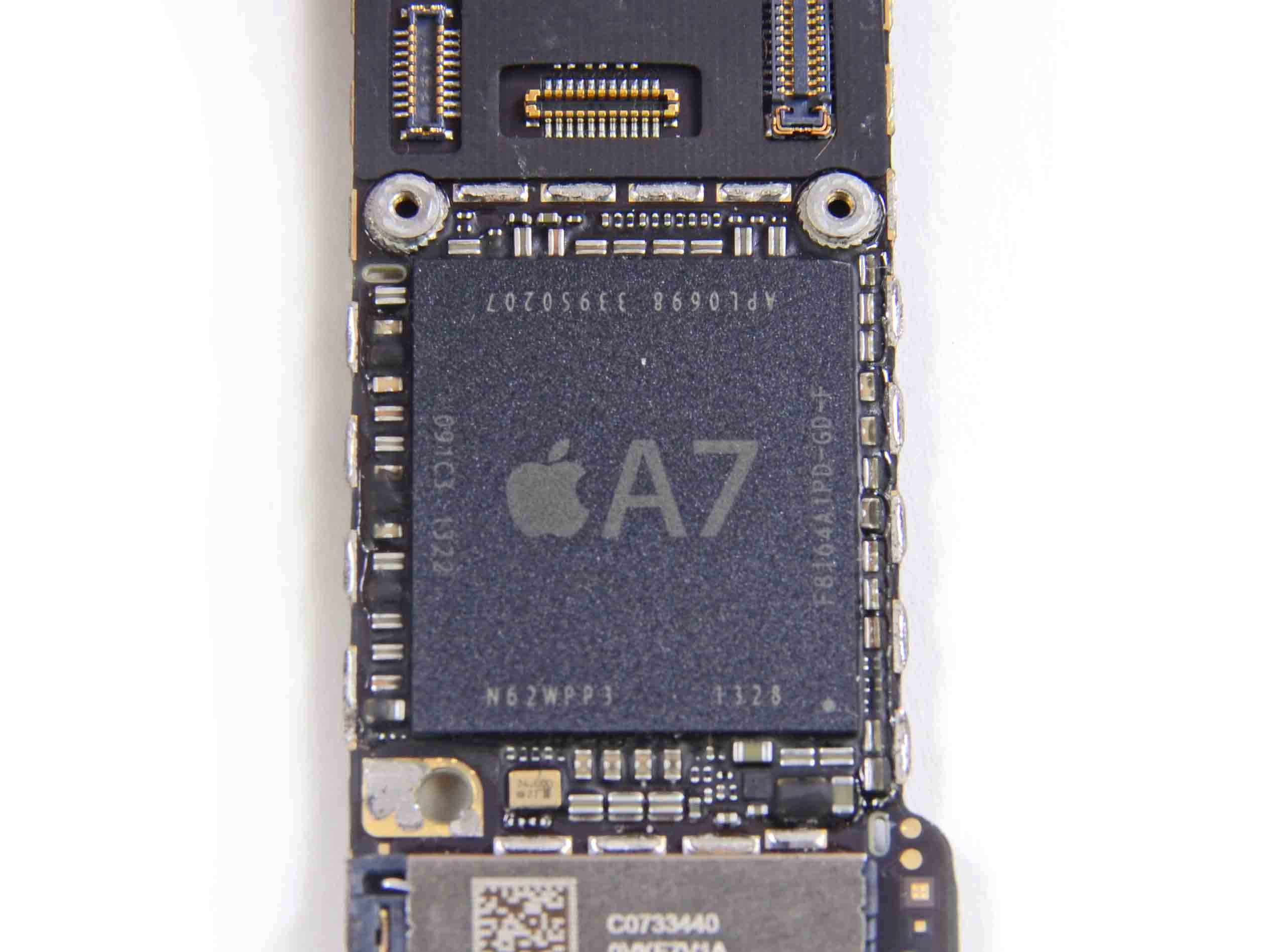 A Closer Look at Apple's A7 Chip from the iPhone 5s MacRumors For the iPhone 5, the company press release heralds a "blazing fast A6 chip," but little more. For the iPhone 5c and the iPhone 5s, Apple's dual press releases reveal "blazing fast performance of the A6 chip" and an all new 64-bit "A7 chip" as well as a new "M7 motion coprocessor," for the two devices respectively, but no other details are.