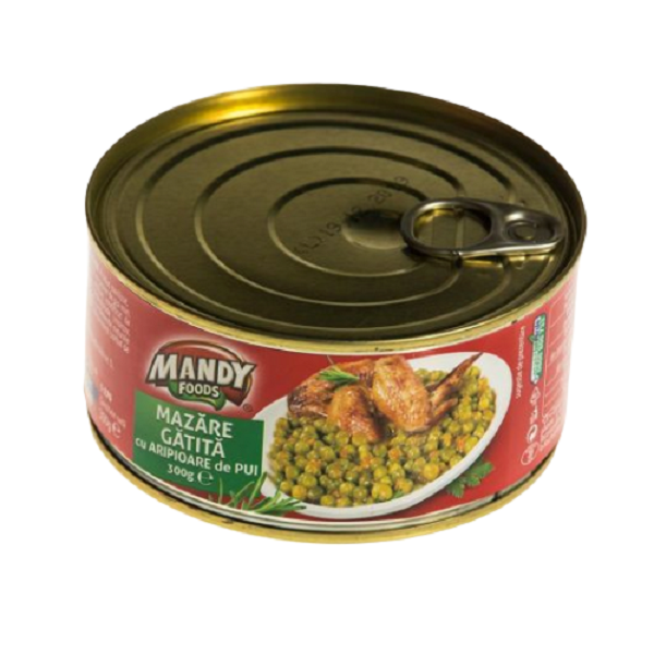 MANDY MAZARE GATITA CU ARIPIOARE DE PUI 300G ROMANIAN PRODUCS Mazărea de la cutie este deja bine fiartă, astfel că o puteți pune odată cu roșiile în suc propriu. Dacă folosiți mazăre congelată, o puneți pe ea întâi și o lăsați să fiarbă împreună cu aripioarele.