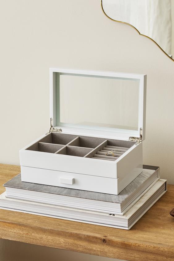 GLASS JEWELLERY BOX Glass jewelry box, Zara home jewelry box, Zara home HOME; My account; WOOD AND LINEN JEWELRY BOX. 49.90 USD-40 % 29.90 USD.. ZARA / WOOD AND LINEN JEWELRY BOX. Change store. United States; Change language. English; Español. WOOD AND LINEN JEWELRY BOX. 49.90 USD-40 % 29.90 USD. Rectangular wooden box with linen-lined interior and glass lid.