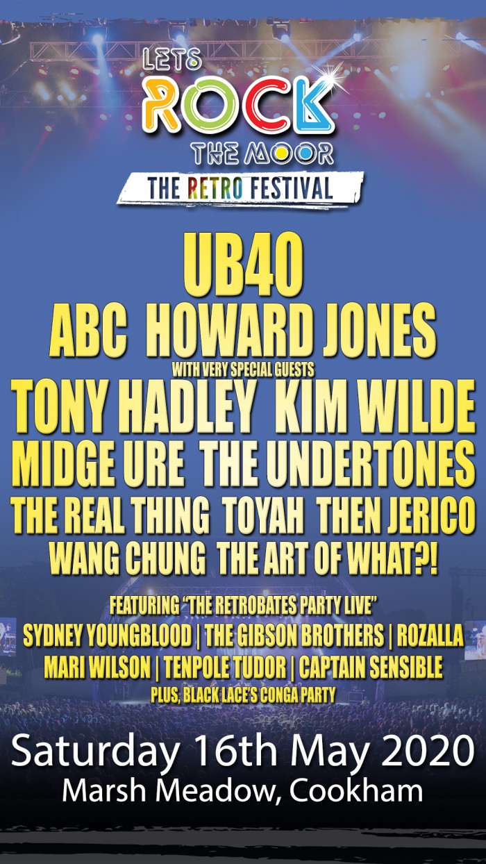 Toyah Willcox at Lets Rock The Moor Cookham 2012 YouTube Let's Rock The Moor Sat 2 Oct 2021 12:00 PM - 10:30 PM BST Marsh Meadow, Cookham, SL6 9SB The UK's favourite and largest retro festival returns to Cookham in Berkshire on Saturday 22nd May 2021. With a fabulous line-up of artists to bring you the very best of the 80s, there is plenty to do for everyone at this Family Friendly Festival.